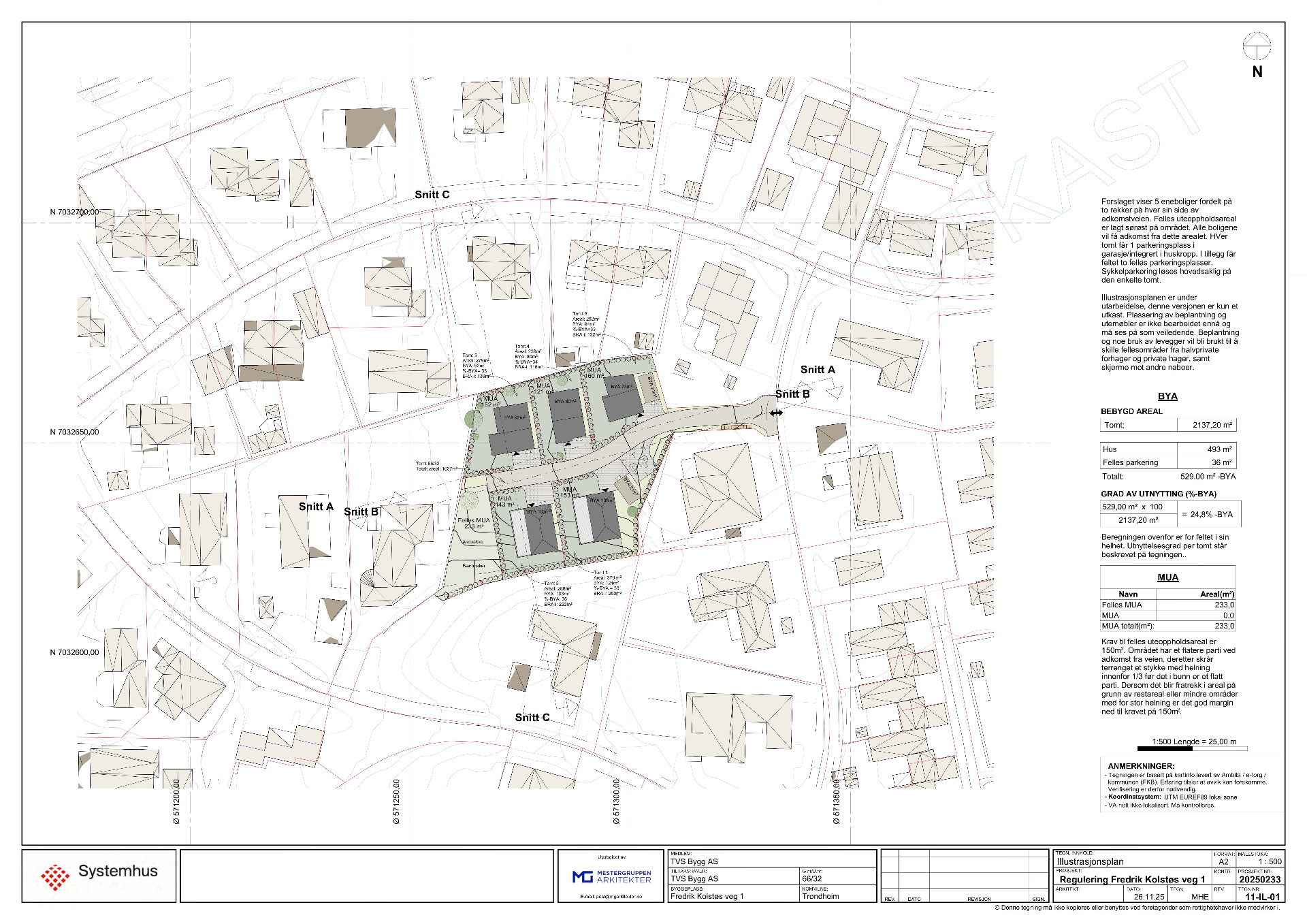 (SOLGT) KYSTAD - Rehabilitering av 2 eksisterende eneboliger m/utleie samt omregulering av området og nybygg av 3 eneboliger / kjedet bolig. Planlagt for salg primo 2025.